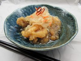 お子様でも食べやすいように一口サイズにカットしたアジを薄衣で揚げ、厳選した本格調味料を使用した南蛮ダレに漬け込みました。